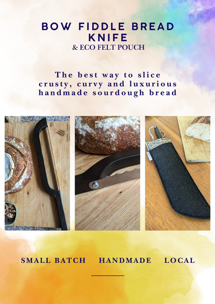 When you purchase a Linden Loaves Bow Fiddle Bread Knife with Eco-felt pouch, you are supporting local business, job creation and sustainable small-scale craft.